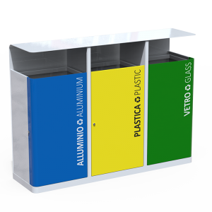 Cestino con tre scomparti per la raccolta dei rifiuti differenziati, modello Ekos.