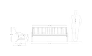 Panca in acciaio e legno, modello Argese con seduta e schienale composta da fasce in legno di rovere Barrique.