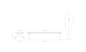 L’ancoraggio avviene mediante l’utilizzo di tirafondi e tasselli ad espansione. Scocca seduta realizzata con sedici profili in tubo tondo di acciaio zincato completi di tappi terminali in PVC a testa sferica.