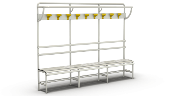 Panca per gli spogliatoi, perfetta per palestre, piscine e scuole di danza, adatta a tutti gli ambienti interni. La struttura della panca è in acciaio zincato verniciato al forno con polvere epossidica, disponibile in diverse finiture. La verniciatura epossidica è ideale per gli ambienti interni, in quanto conferisce al prodotto un’ottima resistenza chimica, meccanica e alla corrosione.