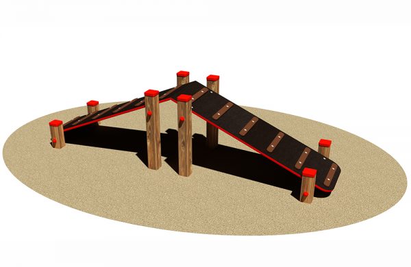 Pedane su e giù Passerella Agility Dog. Realizzato in legno di pino nordico impregnato in autoclave con sali atossici. Costituita da n° 2 pedane inclinate in multistrato di betulla ad incollaggio fenolico, con zigrinatura antiscivolo, e rifinitura con film colorati in entrambi i lati, sorrette da n° 4 montanti in legno di pino lamellare della sez. cm 7 x 7. Assemblaggio mediante bulloneria in acciaio zincato 8.8 e dadi autobloccanti. Elementi copridado a norma in nylon colorato. Tappi copripalo in polietilene.
