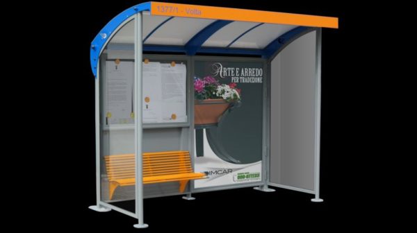 Pensilina per l’attesa autobus in metallo ideale per l’arredo urbano, realizzata a sbalzo, mod. Romagna.