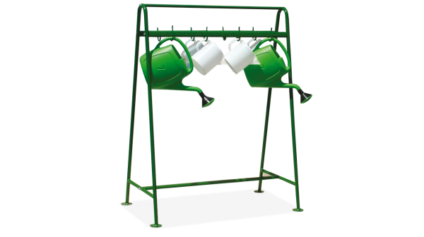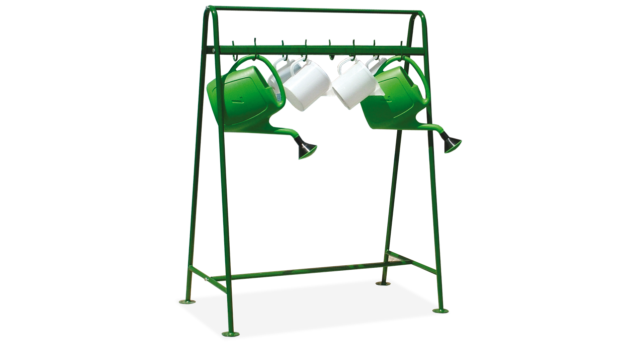 Struttura porta annaffiatoi a 8 posti per cimiteri. La struttura è completamente in acciaio e ancorabile al suolo.