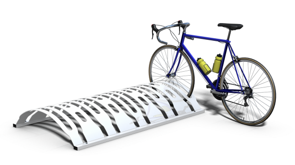 Rastrelliera per bici in lamiera di acciaio zincata intagliata e sagomata.